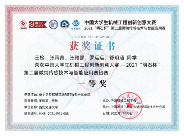 团队获“明石杯”微纳传感技术与智能应用赛优秀组织单位