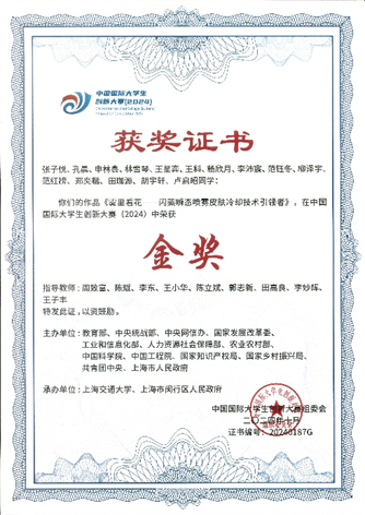 指导学生获得中国国际大学生创新大赛荣获金奖