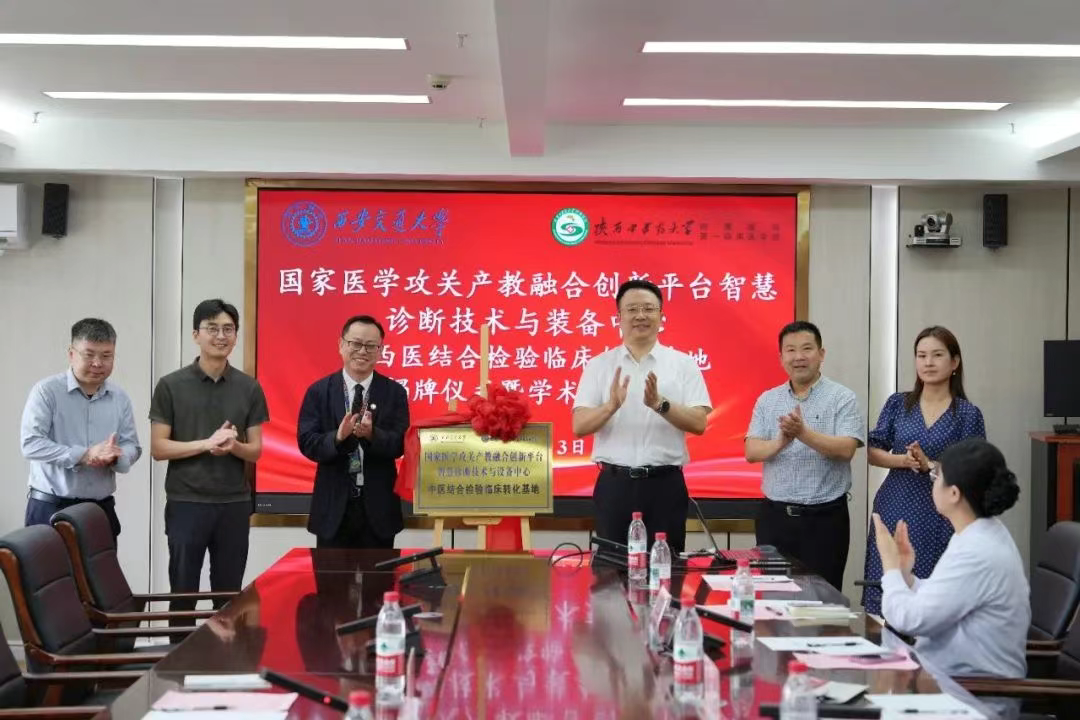 与陕西中医药大学附属医院共建“国家医学攻关产教融合创新平台智慧诊断技术与装备中心中西医结合检验临床转化基地”揭牌仪式