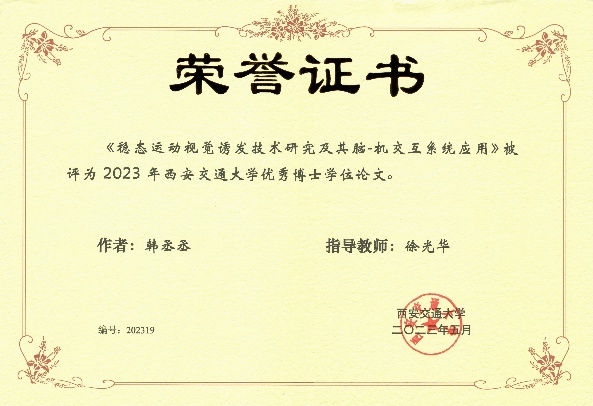 获得国家级教学成果二等奖 获得西安交通大学优秀博士学位论文