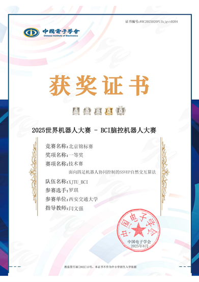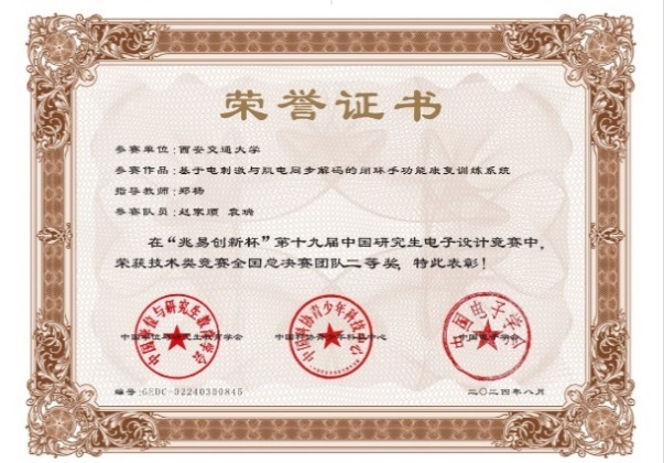 BCI脑控机器人大赛优秀指导教师 电子设计竞赛二等奖