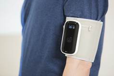 (4)可穿戴式动态血压监测仪技术:传统的动态血压监测设备需要使用肩带、腰带以及延长气管,让患者在身上佩戴24小时,且主机较为厚重,使用非常不便,团队通过与企业合作,构建了实现了可穿戴式动态血压监测技术平台。主机袖带一体化设计,实现了动态血压监测设备的小型化、无气管化和可穿戴;实现了动态血压测量数据的无线实时传输,构建了动态血压数据管理云平台,结合AI人工智能技术,可实时输出动态血压分析报告;针对无气管设计的特点,研究了抑制运动伪差和环境噪声的血压算法。该技术平台对于在基层医疗机构和家庭中普及和推广动态血压技术检测技术具有重大意义。