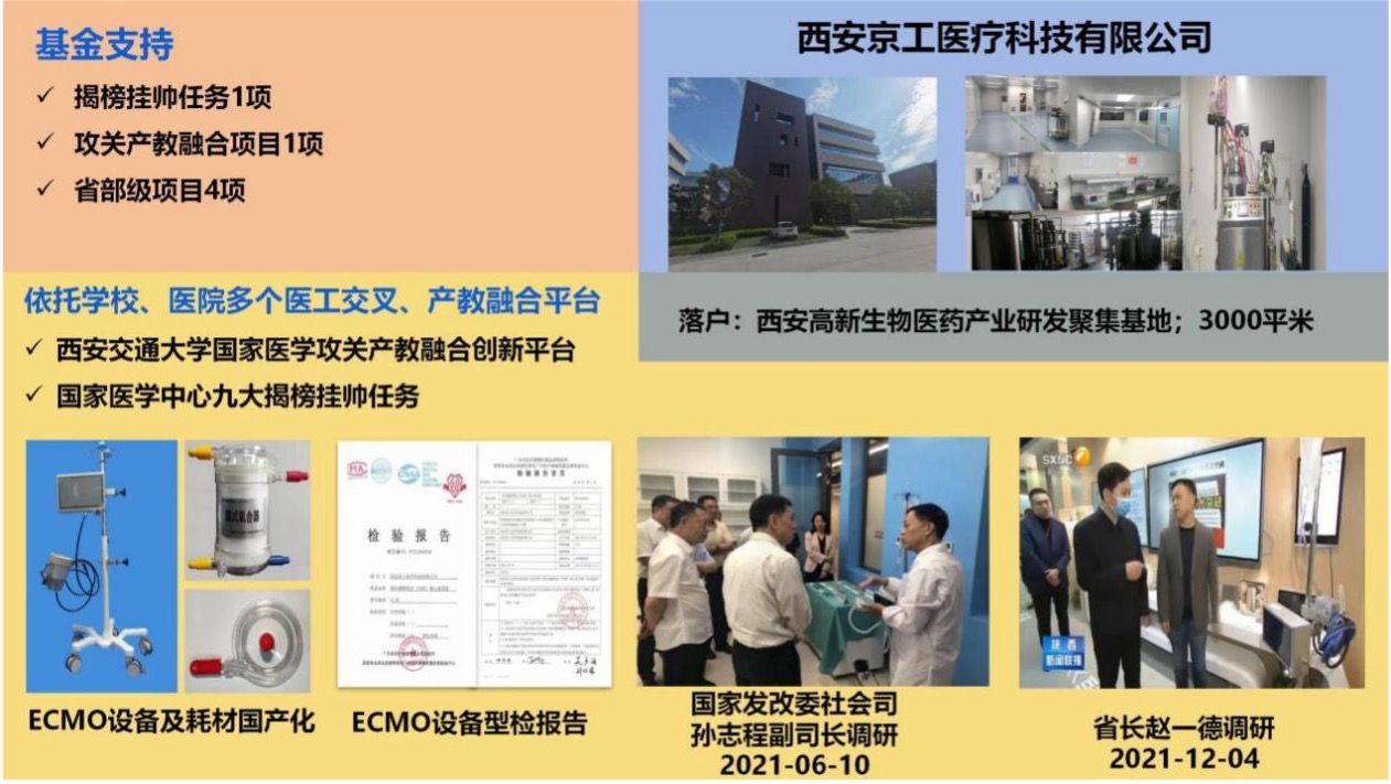 团队已经完成ECMO设备及全系列耗材膜式氧合器、离心泵泵头、循环管路及插管的自主研发及临床实验;全部注册资料已提交国家药品监督管理局申报ECMO设备及全部耗材的医疗器械产品注册证批号。