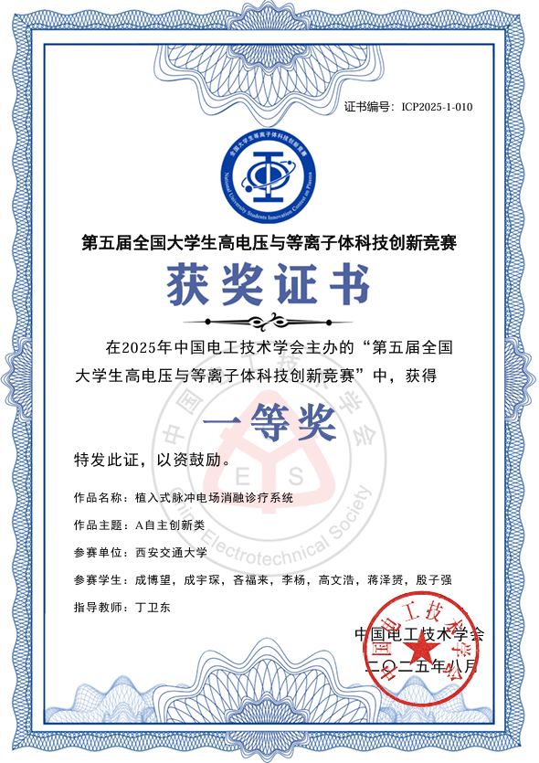 2025年获得第五届届全国大学生高电压与等离子体科技创新竞赛国家级一等奖