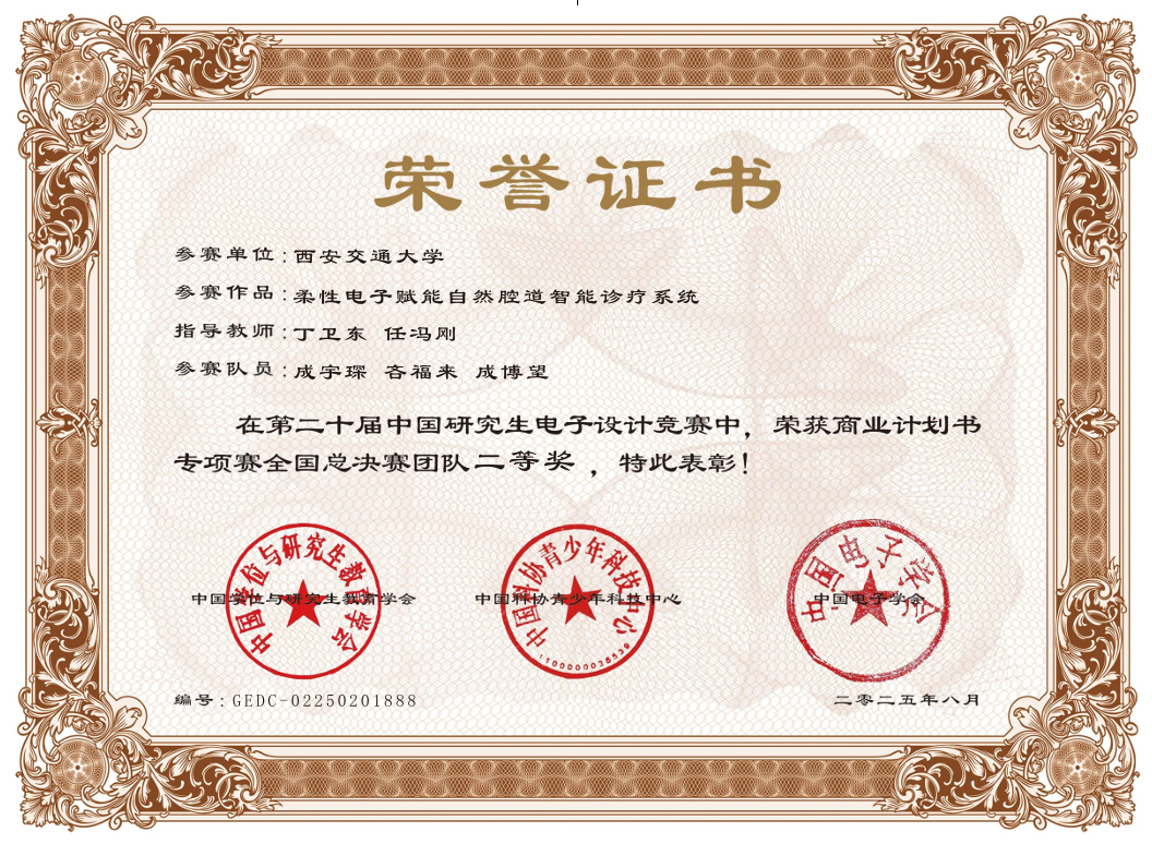 2025年获得第二十届中国研究生电子设计竞赛国家级二等奖
