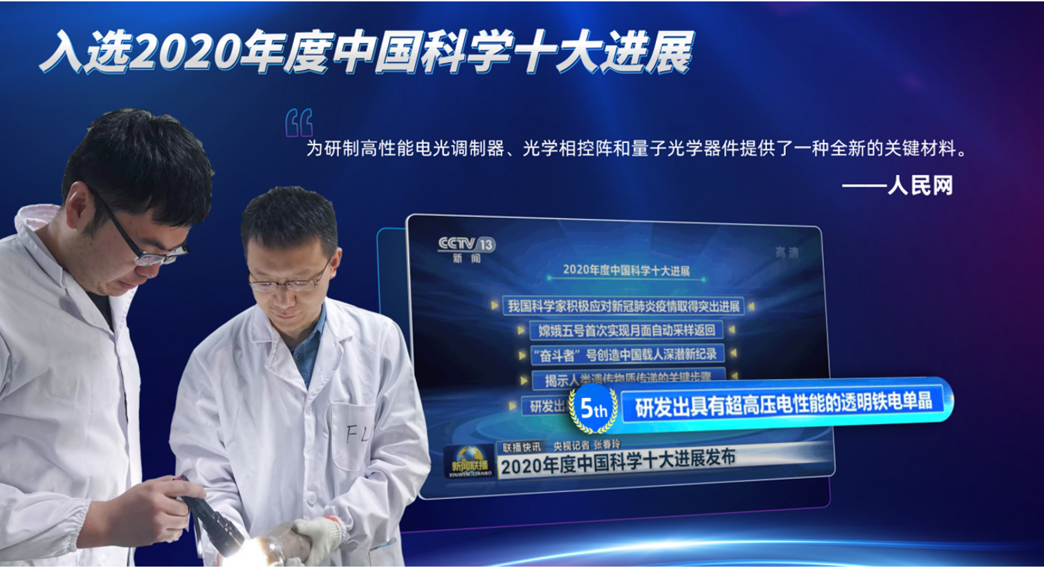 超高压电性能透明铁电单晶入选2020年度中国科学十大进展