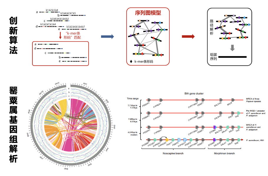研发“序列条形码”新算法,解析罂粟属复杂泛基因组,揭示吗啡合成通路起源与演化机制
